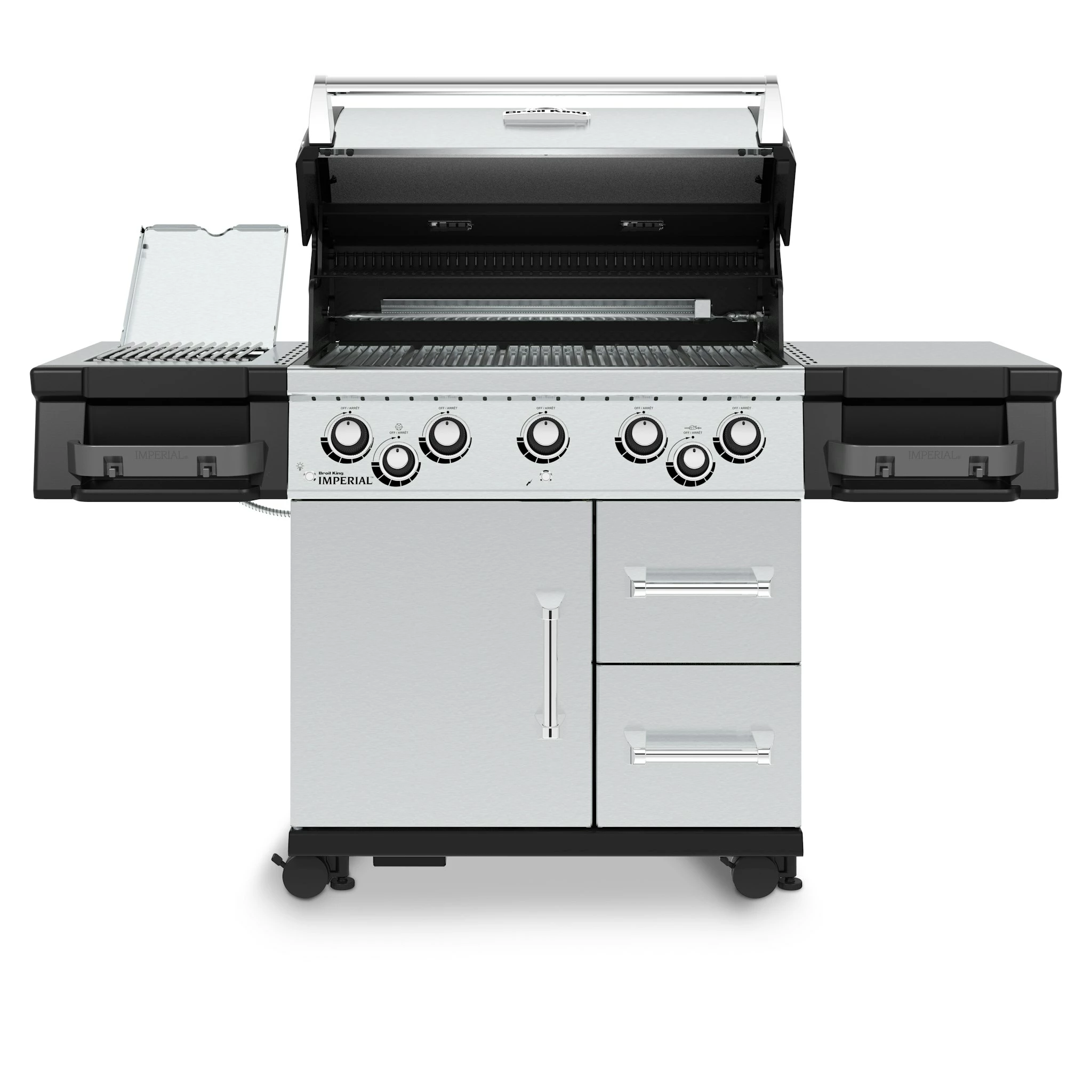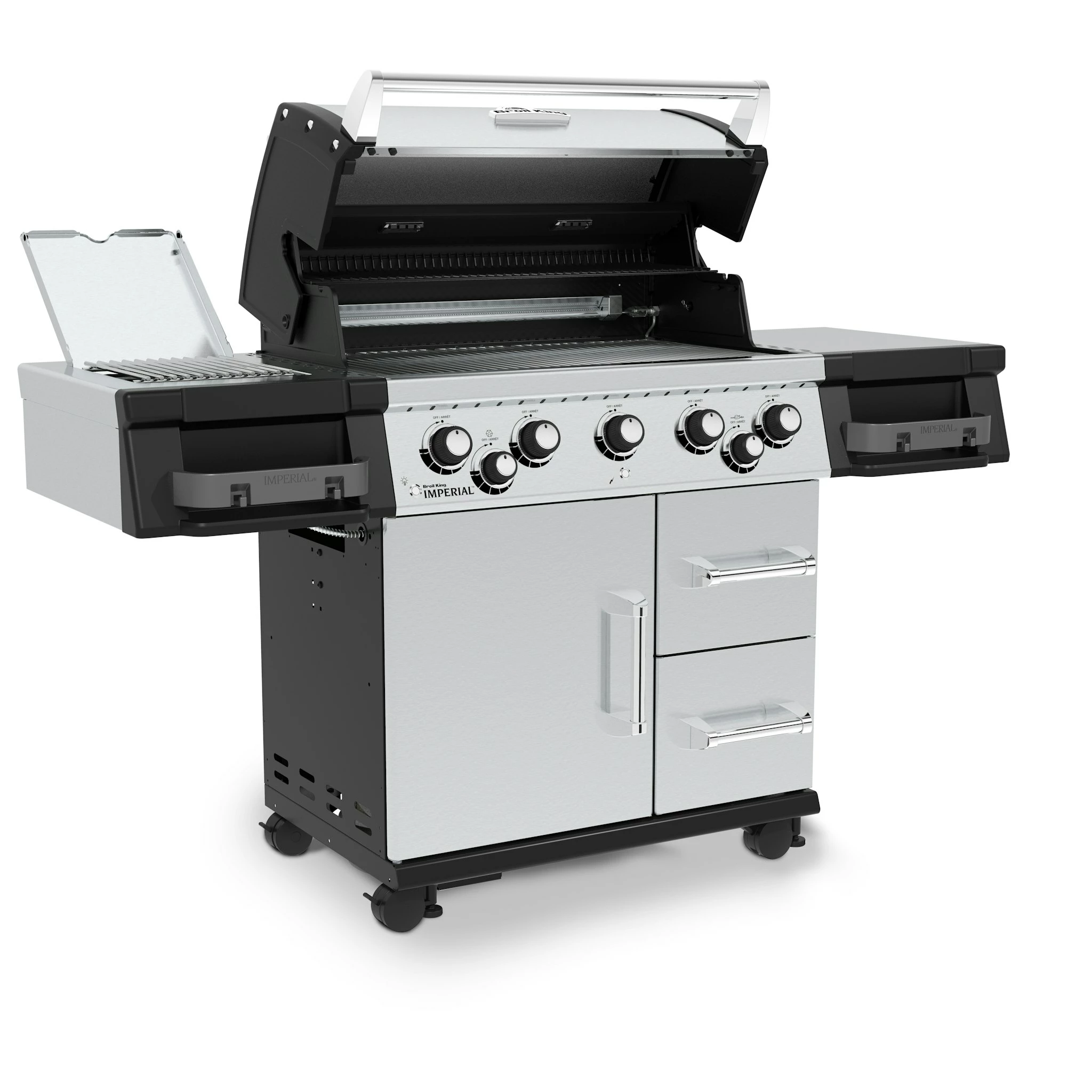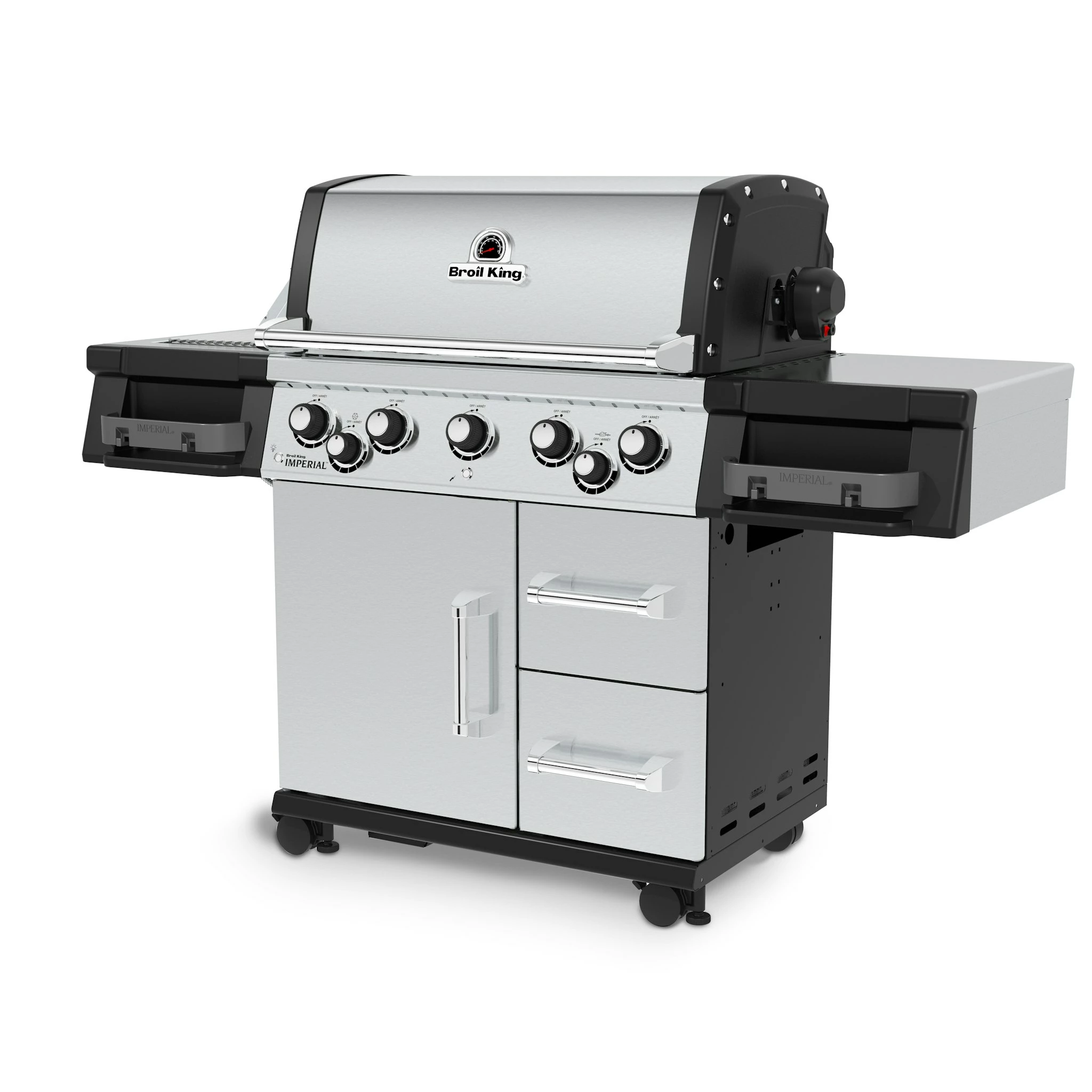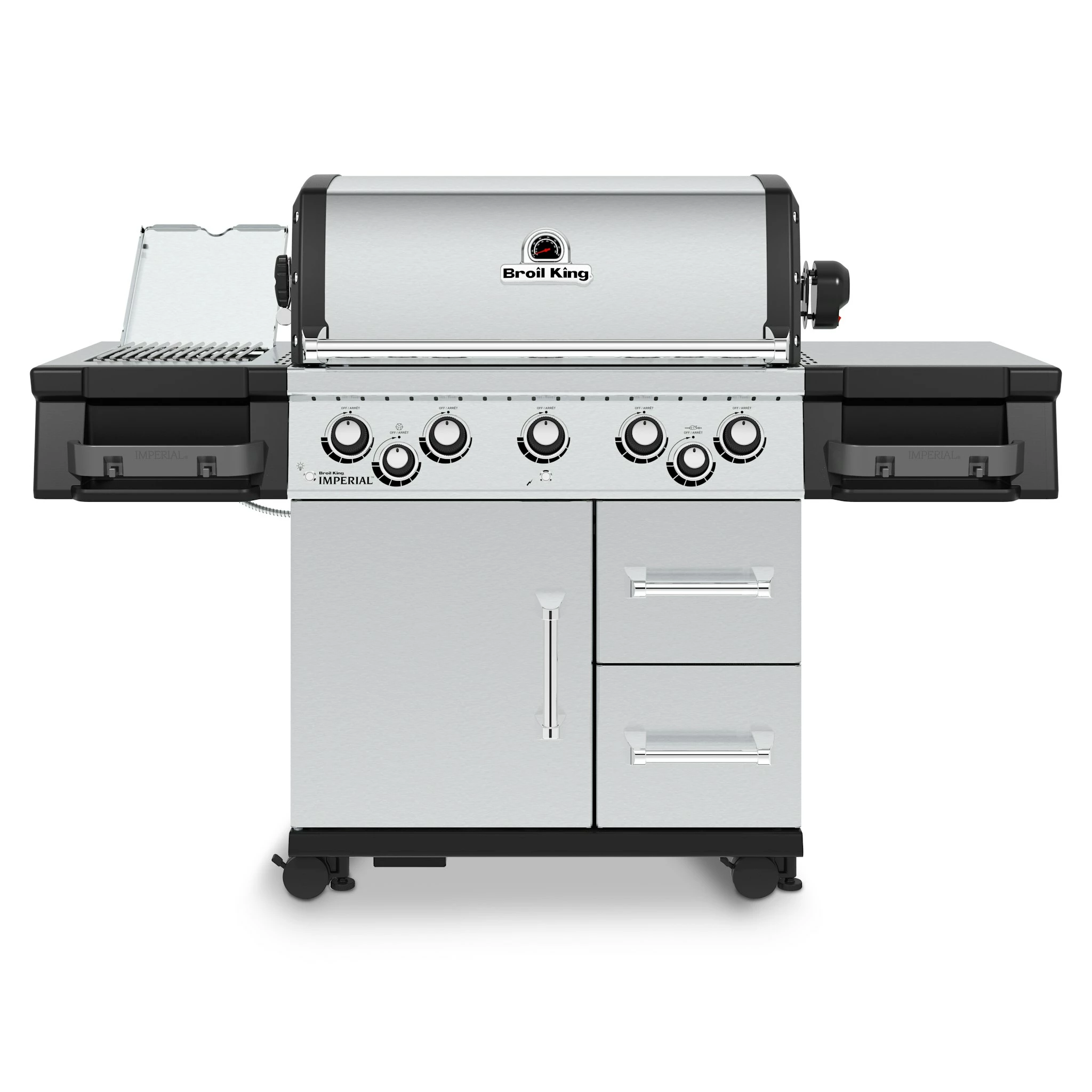 Der Broil King Imperial 590 Pro verfügt über neuartige Edelstahlgussgrillroste, dem Flav-R-Wave Verpampfersystem, 5 Edelstahl Dual-Tube Brenner, einer Grillflächen-, sowie Kontrollknopfbeleuchtung, Edelstahl Seitenablagen und einen geschlossenen Unterwagen mit zwei voll ausziehbaren Schubladen. Hauptgrillfläche  80,0 x 48,5 cm
