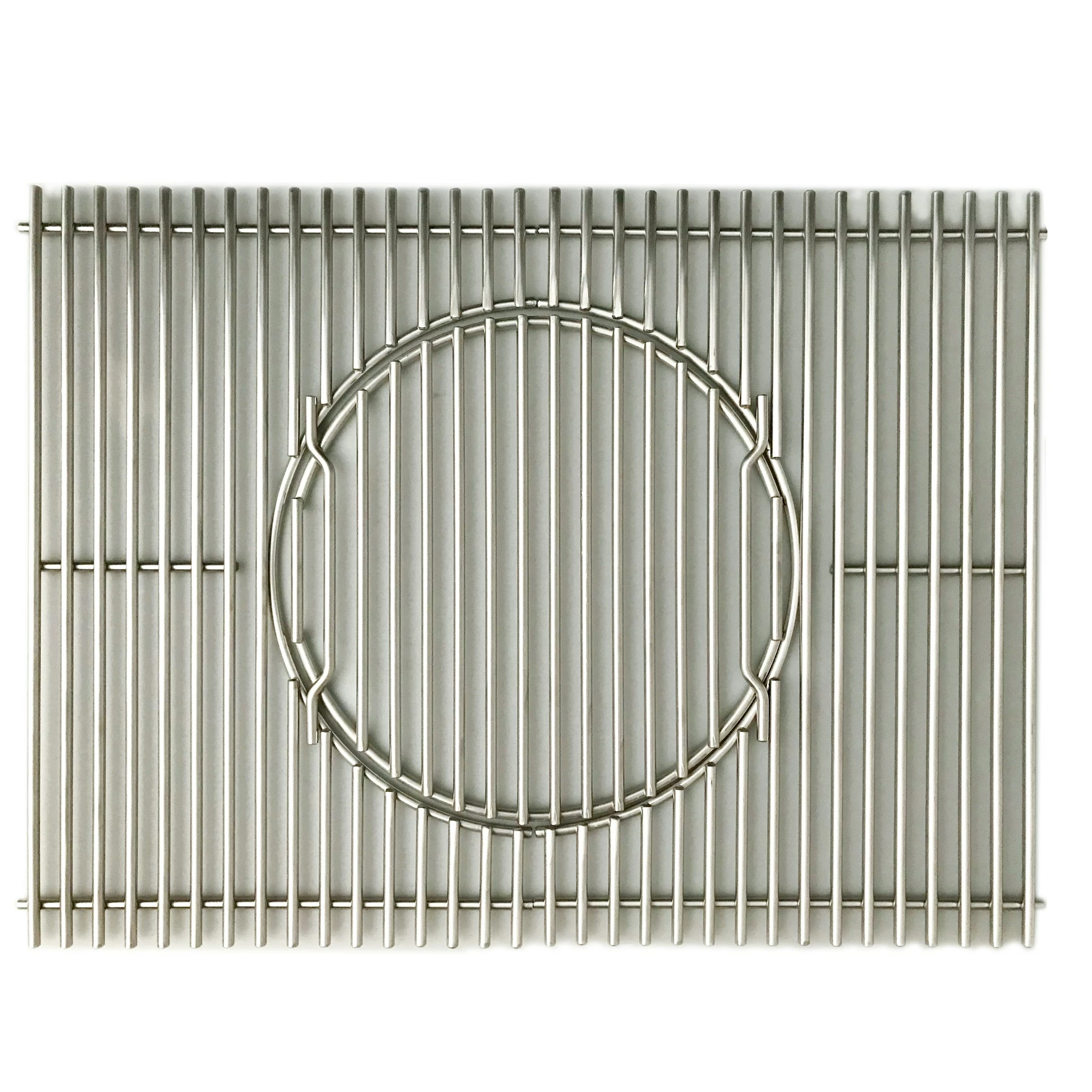Das einzigartige  Rostsystem aus hochwertigem  Edelstahl ist ab sofort auch fĂŒr Ihren Weber Spirit der 300-Serie erhĂ€ltlich. Sie können herkömmlich auf dem Grillrost grillen oder das runde MittelstĂŒck ( Ă 30 cm) herausnehmen und den GBS-Einsatz Ihrer Wahl einsetzen. Dieses Produkt ist extra fĂŒr das  Weber Gourmet BBQ System (GBS) hergestellt. Passend fĂŒr: Spirit E/S-310, E/S-320, E/S-330 MaĂe: ca. 60 x 45 x 1,4 cm Bei Unklarheiten bitte Seriennummer angeben.
